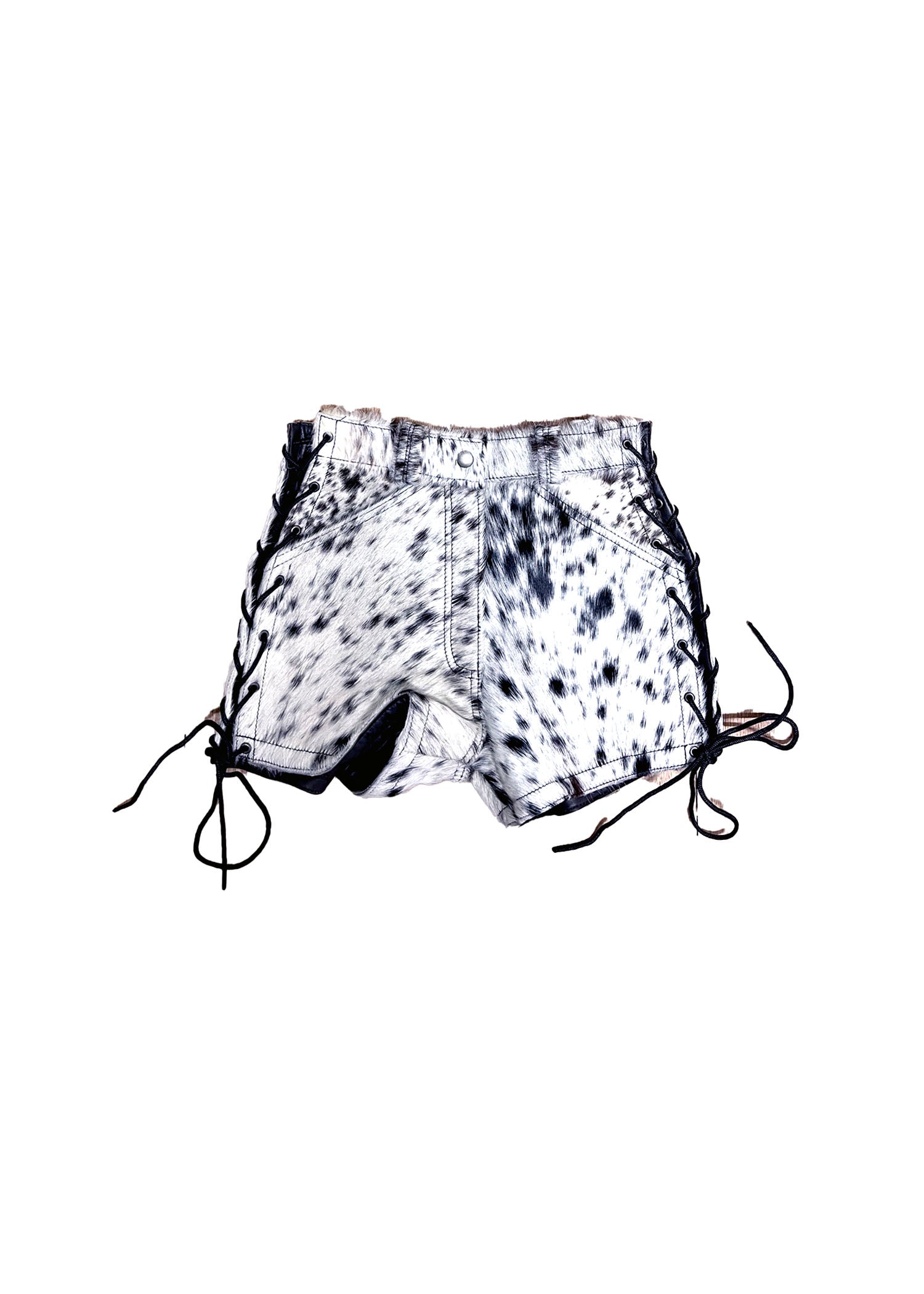 Please keep in mind that all shorts are different patterns due to the shorts are made out of authentic horse hair. Shorts material does NOT stretch, there's adjustable strings on the sides of each shorts. Top is mesh material which is stretchy.
