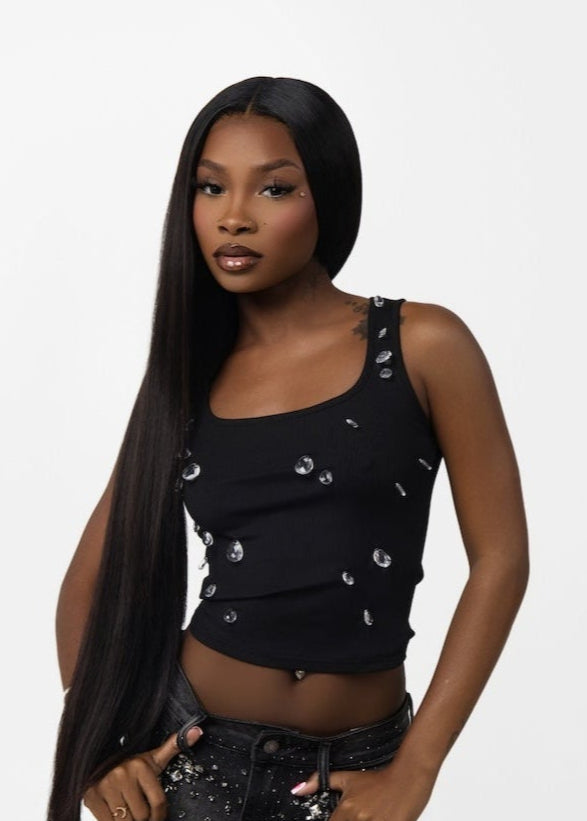 Diamond droplets crystals white and black tank top. Tee has lots of stretch.
